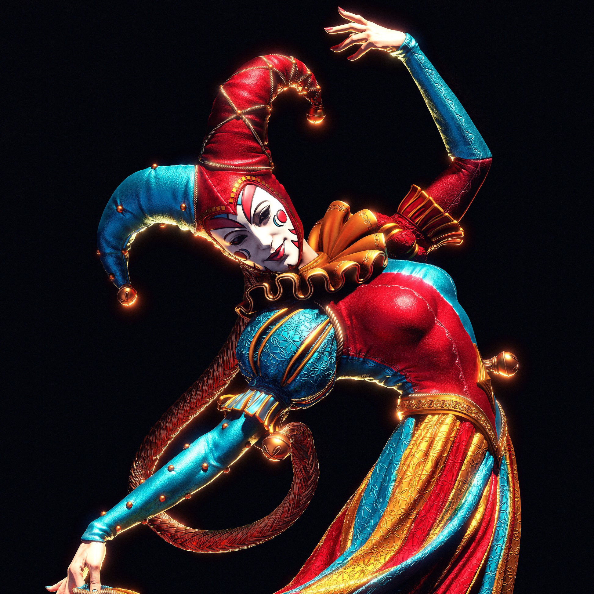 This hand-painted 3D printed statue depicts Jester, a beloved fantasy character known for her vibrant personality and colorful appearance. Each piece is individually crafted using high-resolution resin 3D printing technology and finished by studio artists.