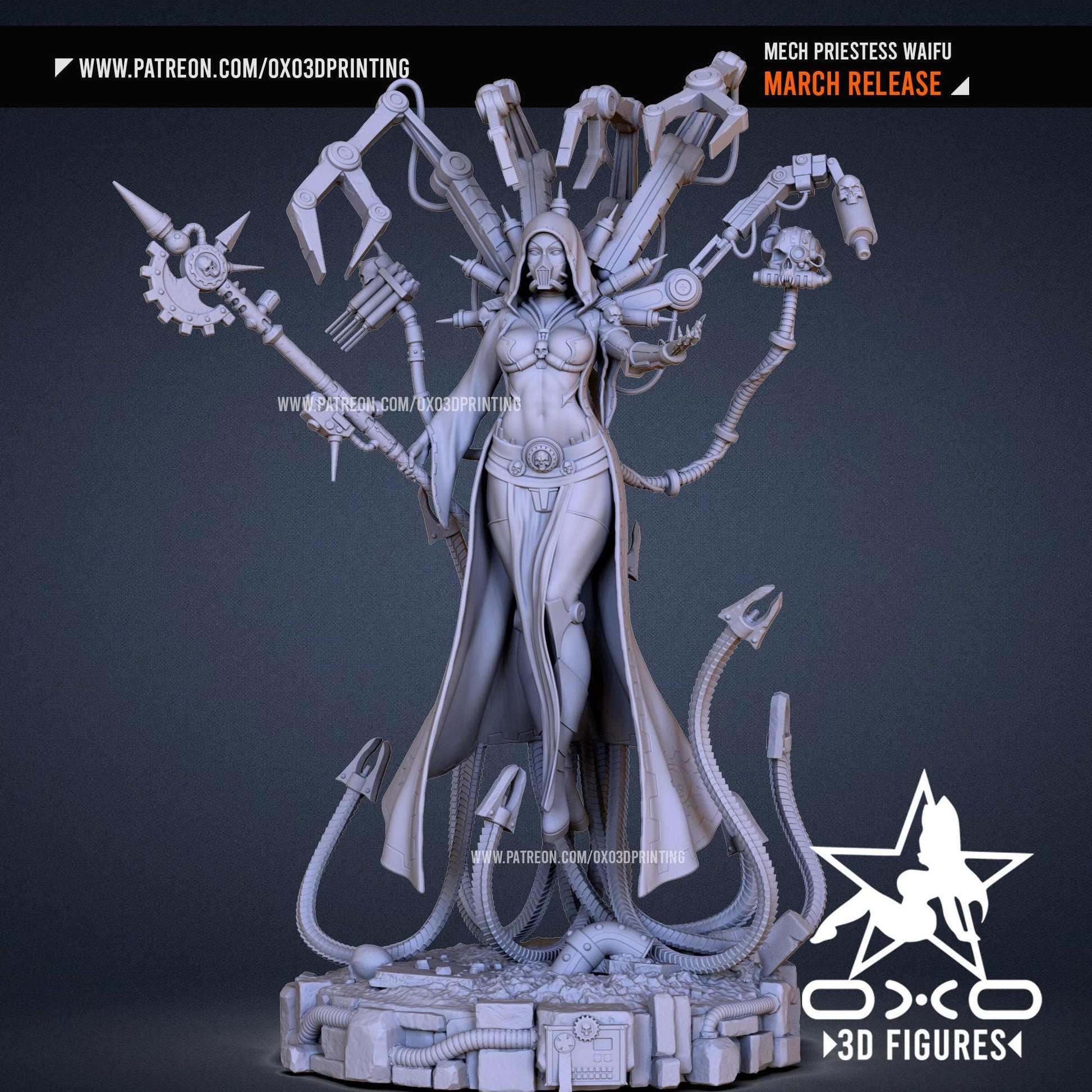 Elite Mech Priestess Waifu 3D Printed Resin Statue: Highly Detailed Collectible Figure for Sci-Fi Fans