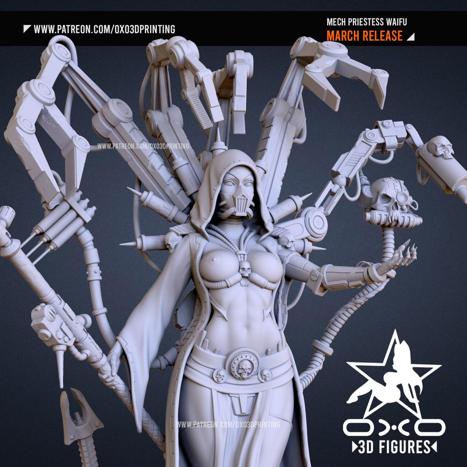 Step into a futuristic world with this incredible Mech Priestess Waifu 3D printed resin statue. This highly detailed collectible figure perfectly blends the allure of a "waifu" character with intricate mechanical enhancements, making it a standout piece for any discerning collector of sci-fi waifu and cybernetic waifu art.